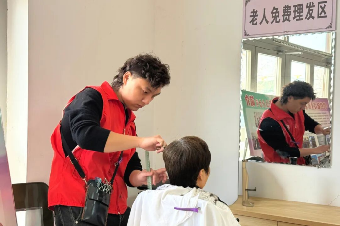 特克斯县特克斯镇霍斯库勒社区在辖区日间照料中心开展爱心义剪活动,为20名老人提供理发服务,用实际行动传递社区温暖与关怀。(国家税务总局特克斯县税务局驻特克斯镇霍斯库勒社区工作队 索德马 供稿)