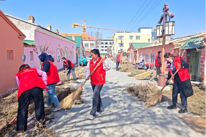特克斯县特克斯镇博斯坦社区开展环境卫生整治活动,志愿者清扫路面落叶杂物,引导居民自觉守护整洁文明的宜居环境。(特克斯县司法局驻特克斯镇博斯坦社区工作队 熊玲 供稿)