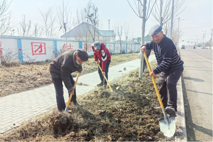 察布查尔县海努克镇向阳村组织党员群众集中养护村内道路沿线绿化带,通过松土、清理杂草杂物等方式,为苗木栽种打好基础,赋能美丽乡村建设。(州纪委监委驻察布查尔县海努克镇向阳村工作队 再米兰·库尔万江 供稿)