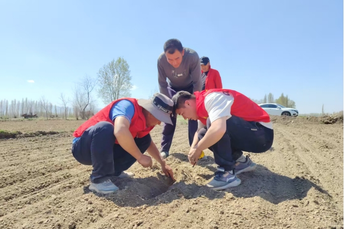 尼勒克县科蒙乡东买里村组织农业技术员深入田间地头,通过技术指导、农机服务、墒情监测等举措,全力保障春播进度与质量,助力春耕备耕生产。(尼勒克县教育局驻科蒙乡东买里村工作队 吐尔逊古丽・叶尔肯别克供稿)