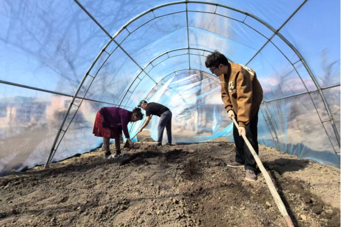 昭苏县萨尔阔布镇库尔克勒德克村为5户群众配套建设温室拱棚,并邀请技术人员开展反季节果蔬种植培训,拓宽群众增收渠道。(昭苏县中医医院驻萨尔阔布镇库尔克勒德克村工作队 阿尔肯·杰恩斯供稿)