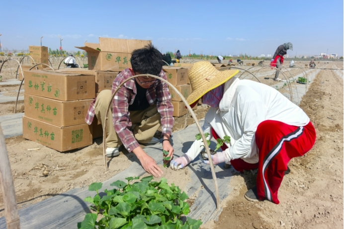 霍城县兰干镇阳光村抢抓春耕黄金期,组织村内富余劳动力移栽西瓜苗200余亩,完成覆土、定苗等管护工作,缓解春耕期间人力紧缺问题,为全年丰产增收打下坚实基础。(霍城县融媒体中心驻兰干镇阳光村工作队 王红磊 供稿)