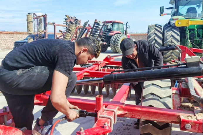 伊宁县喀什镇赛皮尔村联合州司法局、州气象局驻村工作队,组织技术人员为30余台旋耕机、播种机、拖拉机等农机具进行维修保养,确保农机具“健康”上岗、安全作业,为春耕生产保驾护航。(伊宁县喀什镇驻村办 马雅昕 供稿)