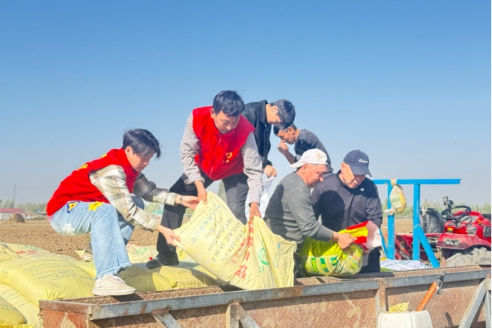 巩留县塔斯托别乡古丽巴格村组织干部深入田间地头,帮助农户搬运化肥种子、调试农机设备、整理田间地块,及时解决农户春耕生产中的急难愁盼问题。(巩留县教育局驻塔斯托别乡古丽巴格村工作队 夏库兰姆·肖开提供稿)