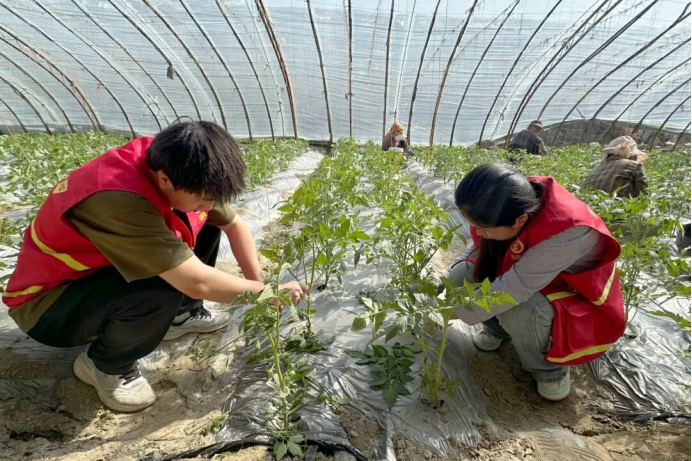 察布查尔县米粮泉乡米粮泉村组建春耕助农服务队,深入辖区蔬菜大棚,协助种植户开展西红柿整枝打杈作业。(察布查尔县纪委监委驻米粮泉乡米粮泉村工作队 于静 供稿)