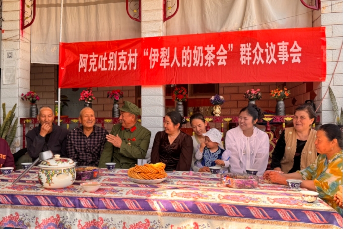 奎屯市乌鲁木齐东路街道苏瓦特社区联合市人民法院、统计局驻社区工作队,组织党员及居民代表开展“伊犁人的奶茶会”群众议事活动,聚焦老人照料、子女托管等民生痛点共商对策,以茶为媒议事解忧,将民生服务落细落实。(奎屯市乌鲁木齐东路街道苏瓦特社区党总支 张莉娟 供稿)
