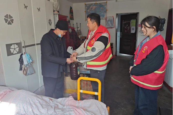 辖区里最让我挂念的是居民闫钦仿,他的妻子瘫痪多年,闫钦仿一个人屋里屋外忙活,头发都白了,背也有些驼,但从没听他在人前叫过一声苦。我们隔三岔五就去家里看看,帮着收拾屋子、拆洗被褥。天热的时候,联系理发店上门给老两口理发。那天帮着收拾完屋子,我正准备走,他忽然拉住我的手,红着眼眶说:“孩子们,谢谢,你们比亲人还亲啊……”