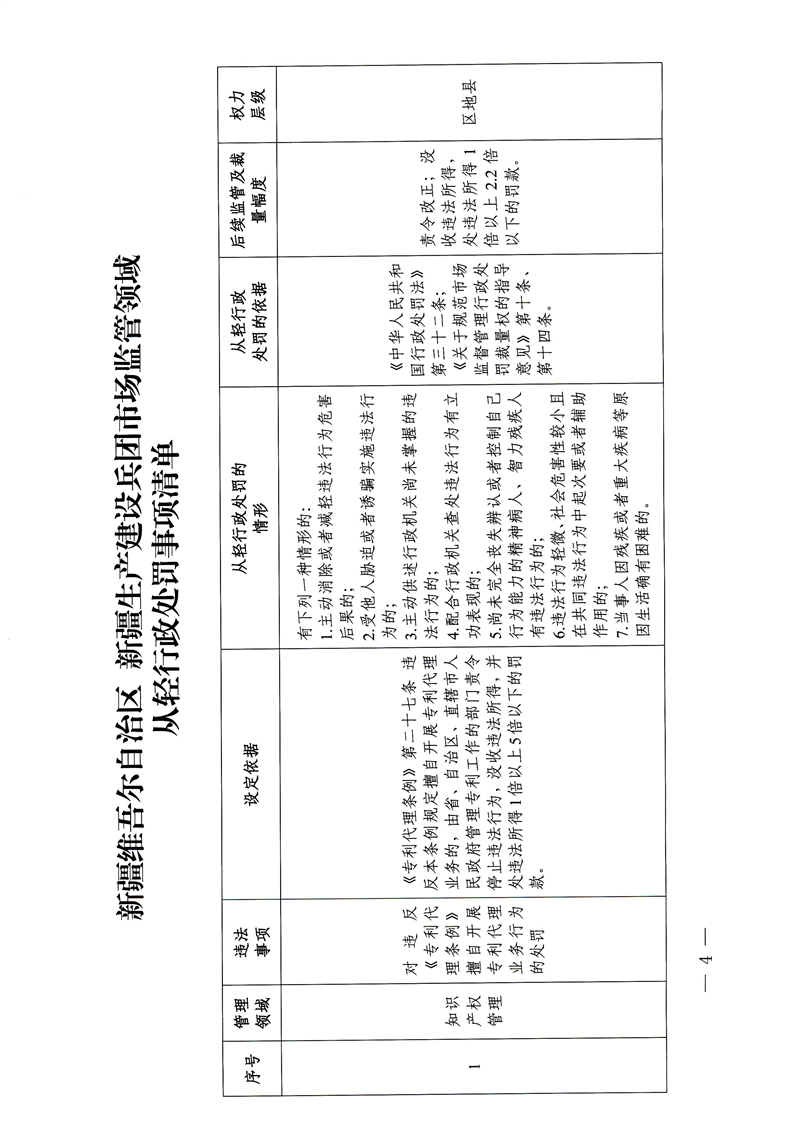 关于印发《新疆维吾尔自治区 新疆生产建设兵团市场监管领域轻微违...