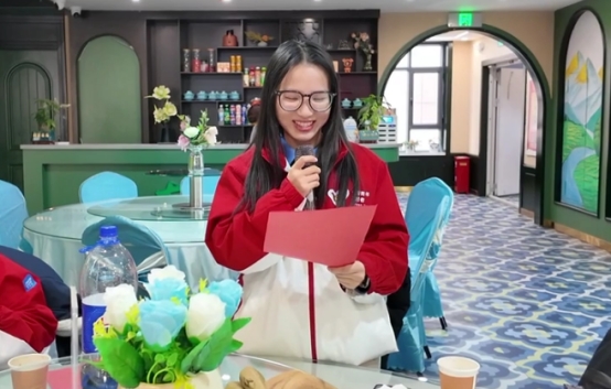 民俗体验环节充满温情暖意,南北方冬至习俗交流分享、集体包饺子等互动活动,不仅让志愿者们深入了解传统民俗文化,更有效化解了思乡之情,搭建起志愿者之间的情感联结桥梁。随后开展的“你比画我猜”“蒙眼喂饺子”等趣味互动游戏,进一步增进了志愿者间的协作与情谊;12月集体生日会的惊喜亮相,让当月过生日的志愿者在烛光、歌声与祝福中,深切感受组织的贴心关怀。活动最后,团特克斯县委相关负责人通报了志愿者积分管理情况,并围绕冬季安全、工作规范等内容作出专项提示,既强化了志愿者管理工作的规范性,又凸显了“严管与厚爱并重”的工作理念。