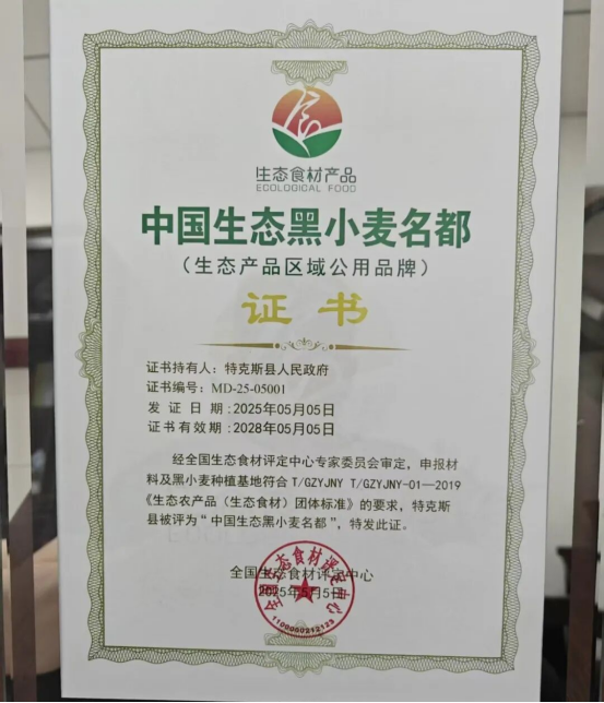 △特克斯县获“中国生态黑小麦名都”和生态原产地保护认证 赛丽曼摄