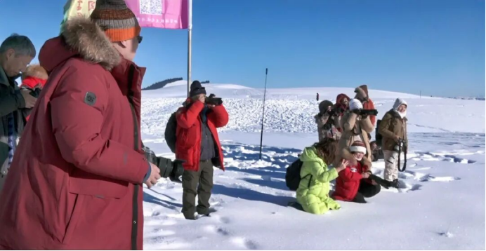 为让远方来客感受草原的热忱,阿克塔斯姑娘峰景区工作人员早早便在入口等候,以当地最具特色的礼仪迎接摄影团成员。欢快的歌曲伴随着“恰秀”撒糖的美好祝福,摄影团成员们瞬间融入欢快的氛围。随后,景区还安排了刺绣、打羊毛、擀毡子、捣麦子、制作塔巴馕等传统民俗展示依次登场,原汁原味的牧民生活场景鲜活生动,成为镜头下最珍贵的素材。摄影爱好者们或驻足围观、或轻声交流,纷纷举起相机抓拍每一个精彩瞬间。采风间隙,热气腾腾的雪地火锅暖心开席,鲜香的食材在锅中翻滚,让大家在冰天雪地的严寒中,切实感受到了特克斯人的淳朴热情与满满暖意。