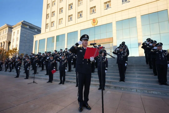“我是中国人民警察,我宣誓!”领誓人高举右拳,铮铮誓词响彻这方土地,百余道声浪汇聚成捍卫正义的誓言洪流,诠释着“对党忠诚、服务人民、执法公正、纪律严明”的铮铮誓言。