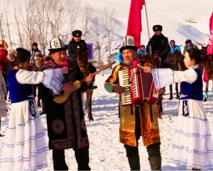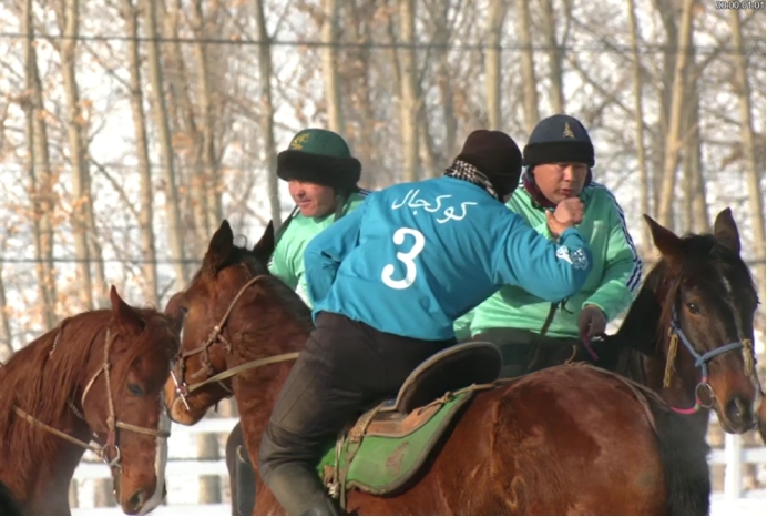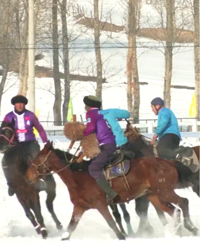 随着裁判员一声令下,特克斯县恩特马克队与吉木萨尔吐鲁帕尔队率先登场交锋,正式拉开半决赛的战幕。赛场上,骑手们俯身掠影、侧挂马身,一系列高难度动作行云流水,惊险绝技接连呈现,引得现场观众阵阵惊呼喝彩。羊只在骑手间来回传递、攻防转换瞬息万变,每一次奋力争夺都扣人心弦。清脆的马蹄声、激烈的呐喊声交织碰撞,奏响了冬日激昂的乐章。