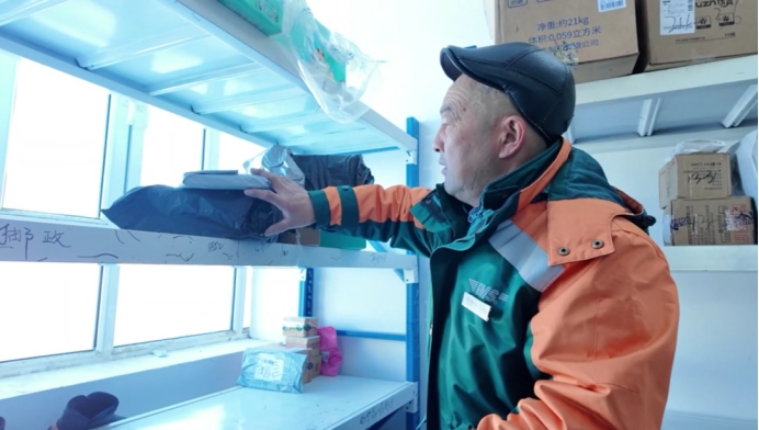 1月21日,特克斯县阔克铁热克柯尔克孜族乡邮政投递员韩军江正忙着分拣、打包快件,准备送往辖区各村委会邮政投放点。工作日期间,他每日承接县城中转的多家快递公司快件,完成分类打包后统一装车配送,最远可直达距县城60公里的莫因台村,为偏远村落村民提供上门投递服务。