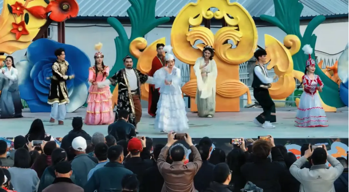 《黑走马》《解忧公主》《盛世中华》等经典歌舞轮番上演,浓缩版“年味文艺汇演”直击人心。最后全场大狂欢,演员带领大家共跳集体舞,舞台到街巷全是欢乐海洋,氛围感拉满!