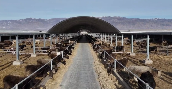 “我们圈舍采用双列式封闭结构,牛均面积达15平方米,10座青贮池全部采用钢混结构防渗漏设计,单池容积可满足肉牛3至6个月的青贮需求,确保养殖环节的标准化与高效化。”特克斯县五万头肉牛养殖全产业链建设项目副厂长韩非凡说。
