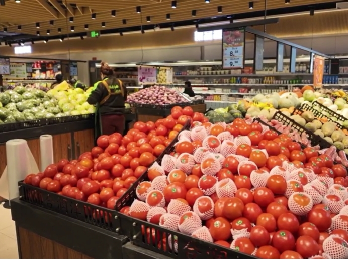 △超市内新鲜多样的蔬菜,礼盒,油米面等物品备货充裕 居哈尔毕摄