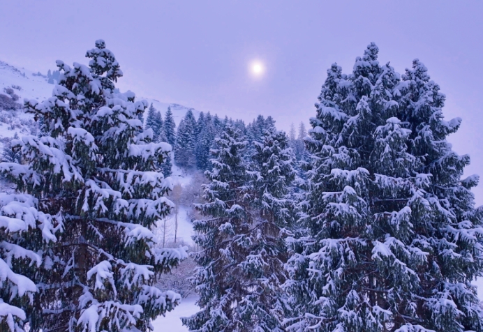 一场落雪过后,这里就换了模样。青松被白雪轻裹,往日的苍劲添上了几分柔和,银霜凝在松针之上,将翠绿晕染成朦胧的诗意。