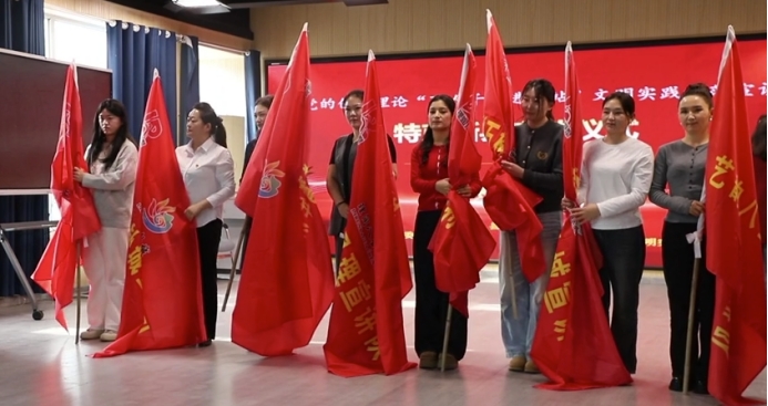 活动最后,现场对特克斯县“理润八卦城”宣讲团各宣讲小分队进行授旗,14支宣讲队接过授旗,整装待发。这个春天,党的创新理论正以“沾泥土、带露珠、冒热气”的方式,走进特克斯的寻常百姓家。