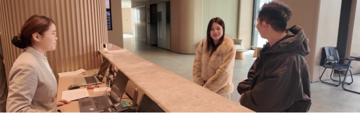 2月3日,位于特克斯八卦城二环的美豪丽致酒店,前台工作人员正为疆内外游客介绍房型、价格,有序办理入住手续。室内装饰巧妙融入本地民风民俗图案及文化元素,让游客沉浸式感受特克斯浓郁的本土文化魅力。