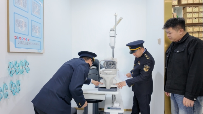 执法人员对县城内5家眼镜店开展专项检查。重点核查验光设备是否按期检定、证书是否在有效期、计量数据是否准确,严查超期未检、检定不合格仍使用等行为,现场指导经营户规范计量台账、落实主体责任,确保配镜环节精准可靠,从源头守护群众用眼安全。