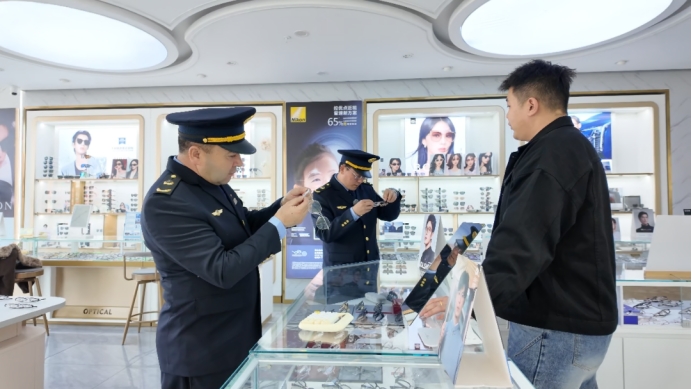 △执法人员对县城内5家眼镜店开展专项检查 居哈尔毕 摄