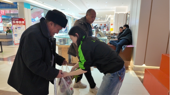 3月14日,合润泽仓储生活超市入口处专门设立爱心洋葱发放点,工作人员有条不紊地为前来领取洋葱的居民,发放已称重装袋的洋葱,同时耐心向群众讲解活动规则。超市仓库内,其余工作人员也在紧张有序地开展洋葱称重、分装工作,全力确保每一份洋葱分量充足。