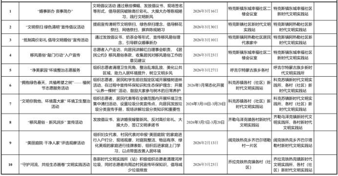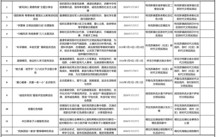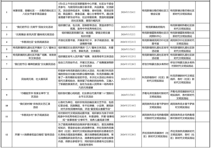 特克斯县新时代文明实践3月活动清单