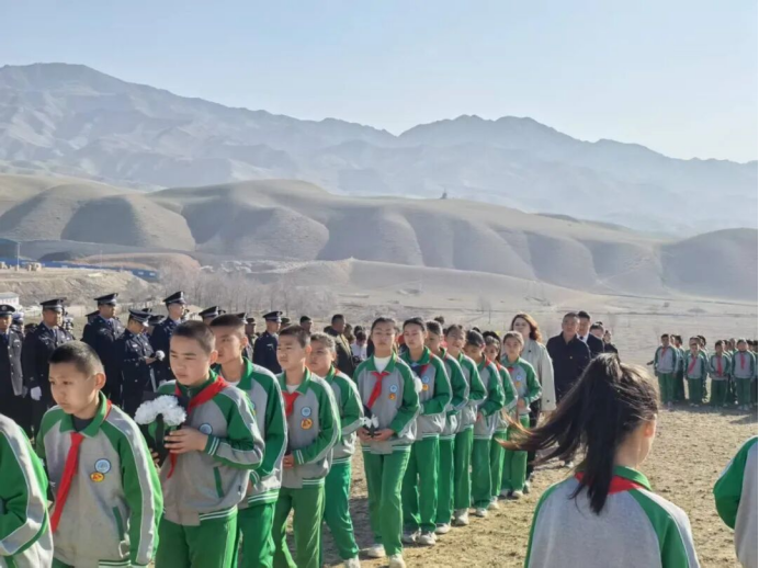 在烈士陵园,全体民辅警警容严整,各单位干部职工与学生代表整齐列队、神情肃穆。全体人员脱帽默哀,向英烈致以崇高敬意;默哀完毕,大家有序向墓碑敬献鲜花、整理缎带,驻足追忆英烈们用生命书写的忠诚与担当。随后,全体党员面向党旗重温入党誓词,铿锵誓言回荡墓园,彰显继承英烈遗志、立足岗位担当作为的决心。