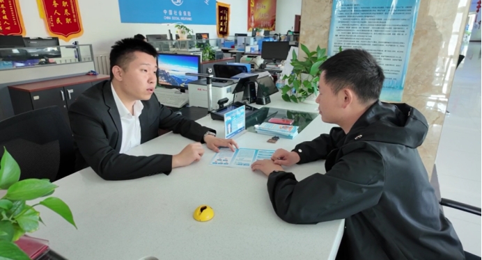 △工作人员为办事群众讲解业务办理流程与政策要点 居哈尔毕 摄
