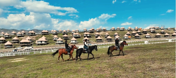 据了解,无垠之境野奢营地坐落于喀拉峻世界自然遗产核心区,占地300亩,是集野奢住宿、文化体验、低空经济于一体的高端旅游民宿标杆项目。营地通过草场入股、牧民家访、吸纳当地牧民就业等方式,已带动40余名村民增收致富,成为喀拉峻村文旅富民的核心载体。特克斯县融媒体中心作为县域主流舆论阵地,拥有“特克斯好地方”客户端、电视、广播及多元新媒体平台,具备强大的官方公信力、专业的内容生产能力和流量扶持优势。///此次三方合作,是特克斯县融媒体中心履行后盾职责、助力驻村帮扶的务实举措,也是文旅与媒体融合的有益探索,可实现拓宽牧民增收渠道、提升营地品牌影响力、丰富媒体宣传内容的三方共赢。