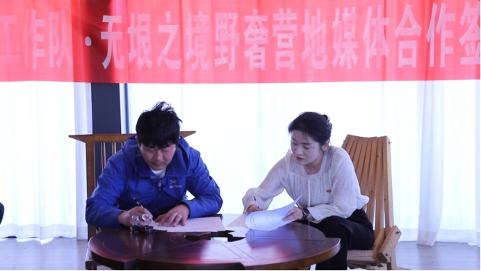 △喀拉峻村驻村工作队与野奢营地签署宣传合作协议 赛丽曼 摄