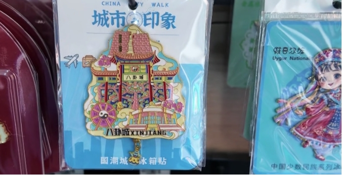 店内拥有二十多类上千种文创产品,毛线编织发卡、花束配色明快、小巧精致,兼具伴手礼与旅拍装饰功能;以八卦城、太极坛等地标为原型的冰箱贴,将城市特色与创意结合,成为游客收藏纪念的热门单品,让“八卦城记忆”可触可藏。