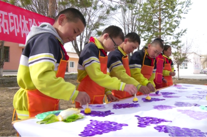 特克斯县乔拉克铁热克镇萨尔阔布小学学生德丽巴尔·白胡特说:“在动手实践中,我学会了用一片叶子印出多种多样的图案。今后我会多观察身边的物品,用创意赋予它们新的生命力,用心传承传统技艺。”