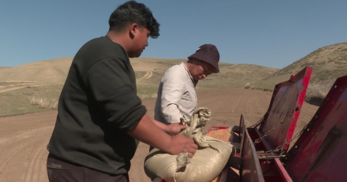 特克斯县齐勒乌泽克镇阔布村村民达吾热尼·亚尔马马提说道:“我的地种的小麦,小麦有补贴,种的也放心。去年我们也种的小麦,收入很好。”