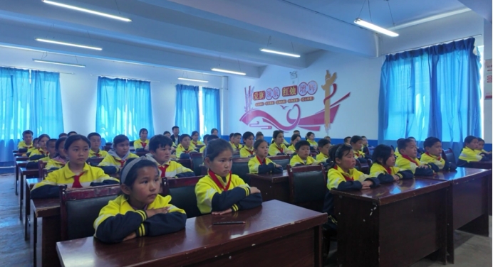 △学生们认真聆听居马泰・俄白克宣讲 吾兰 尚时春雨 摄