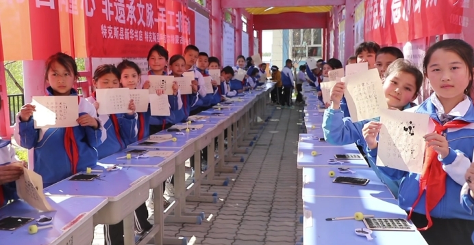 “以前只在课本里见过,但今天亲手印出了古诗,我觉得很神奇,我以后还要参加这种活动。”特克斯县呼吉尔特蒙古民族乡中心小学三年级学生刘谷雨,一边展示自己的拓印作品,一边兴奋地说道。