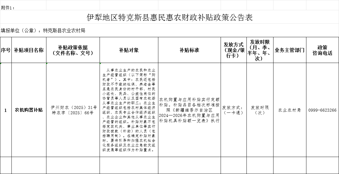 特克斯县2025年度草原生态奖补资金发放汇总表