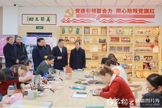 12月30日,自治区党委书记陈小江在自治区残联,听取残疾人就业创业情况介绍,察看残疾人制作手工艺品、非遗产品等。石榴云/新疆日报记者 崔志坚摄