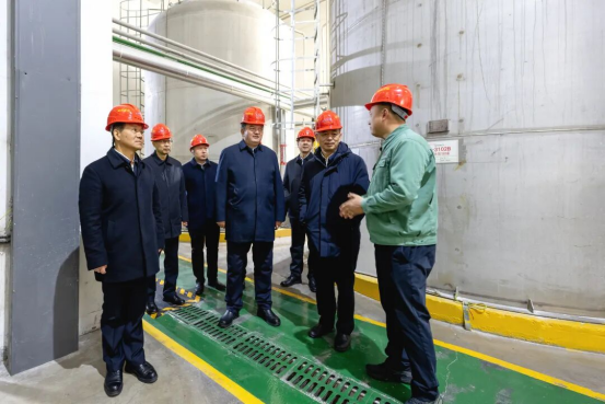 图为州党委书记杨秀理,州党委副书记、州长叶尔夏提·吐尔逊拜在瑞诺生物生产车间,与企业负责同志深入交流,详细了解生产经营、市场销售和安全管理等情况。孙艺男摄