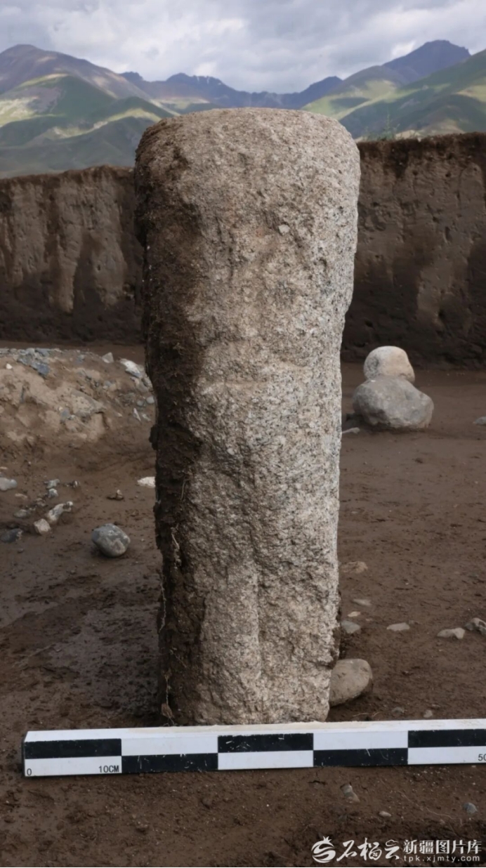 呼斯塔遗址东区墓地出土的石人(资料图片)。