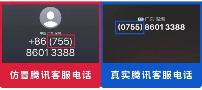 不法分子通过改号软件伪装成腾讯官方客服号码,实际并非微信官方来电。