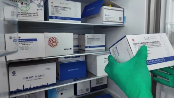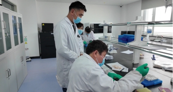 △在实验室工作人员开展抗体检测工作 吾兰摄