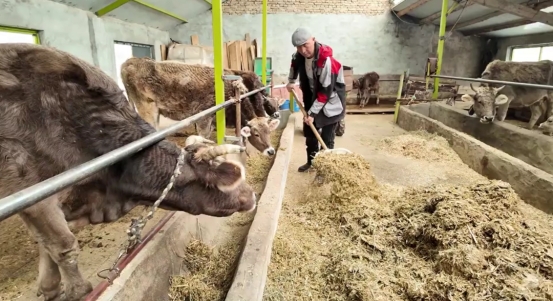 特克斯县阔克铁热克柯尔克孜族乡霍斯托别村村民穆金泉说:“配种的优势十分明显,不仅让牛产下了双胞胎,还实现了集中产犊。只需在产犊高峰期集中照料,极大地节省了人力成本。集中发情、集中产犊的模式,让养殖管理更加高效便捷。”