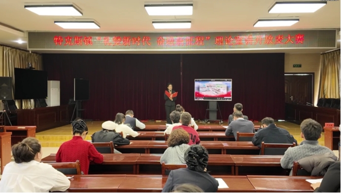 1月21日,特克斯县特克斯镇首届“礼赞新时代 奋进新征程”理论宣讲大赛顺利启幕。来自全镇各社区、村队的16名宣讲员齐聚赛场,以“开放麦”创新形式突破传统宣讲局限,用贴近民生的朴实话语、蕴含正能量的鲜活事例,推动党的创新理论落地生根、浸润人心。