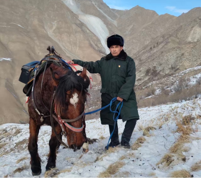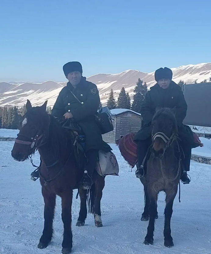 2025年12月27日出发,2026年1月3日返回,历时八天,特克斯县喀拉托海镇柯尔干布拉克村党支部副书记、村委会副主任阿曼吐尔·叶里木斯,带领村医赛山尔力・沙海及替换放牧的牧民一行,踏冰河、翻海拔3800米大坂,前往130多公里外的包扎得儿冬牧场,开展义诊与全覆盖走访宣讲,为牧民送去手电筒、帽子、手套等50套物资,走访牧区20户牧民共60人。