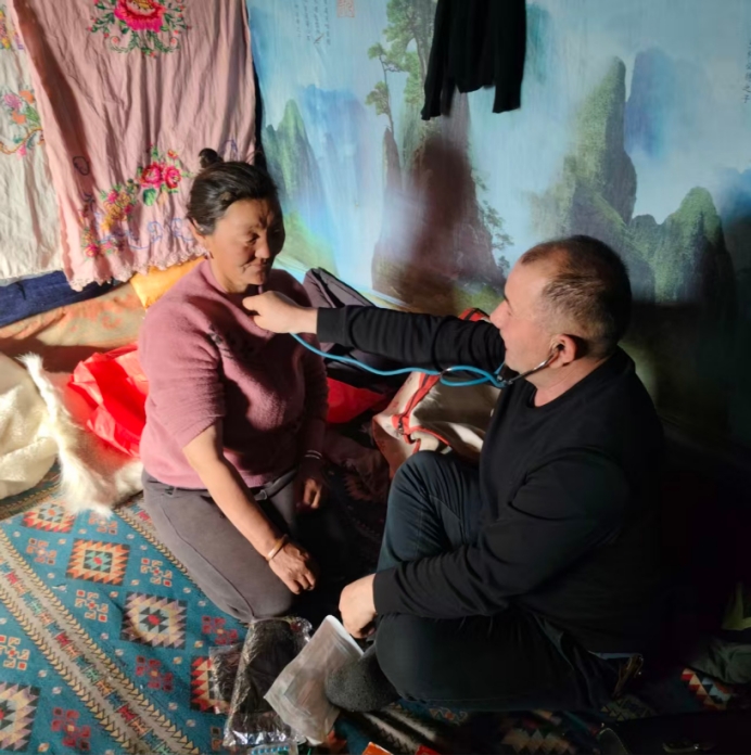 △巡诊队伍为牧民杰恩斯克力德・哈依尔德恩拜家诊疗