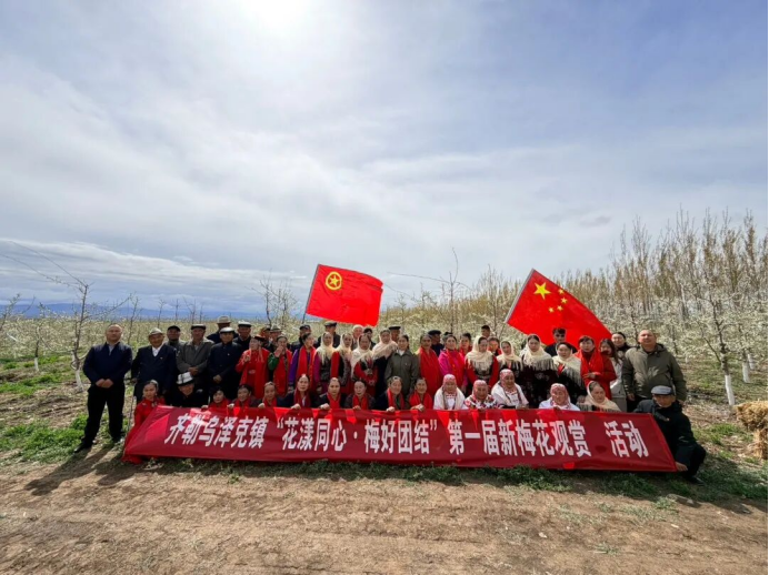 近日,特克斯县齐勒乌泽克镇“花漾同心·梅好团结”第一届新梅花观赏活动在阔布村森木塔斯西梅园举办,活动以花为媒推动各民族交往交流交融,吸引镇人大主席、企业负责人、各中心专干、人大代表、老党员及各族群众代表等150余人参与。