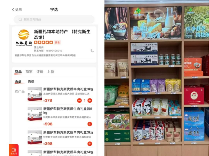 江宁援疆组创新“互联网+实体店”双轨产销对接模式,线上精选六大类46款产品登陆江宁优选平台,优化“一键下单”流程并推出限时优惠;线下在供销小铺设立“特克斯特产专区”,通过产地溯源牌、产品解说卡等沉浸式展示,让消费者直观感受“从草原到餐桌”的品质之旅。特克斯县丝路易都电子商务有限公司负责人表示:“首批上线的奶制品、草原牛羊肉、林果类等产品已接到200余笔订单,江宁市民对新疆特产的喜爱超出预期”。