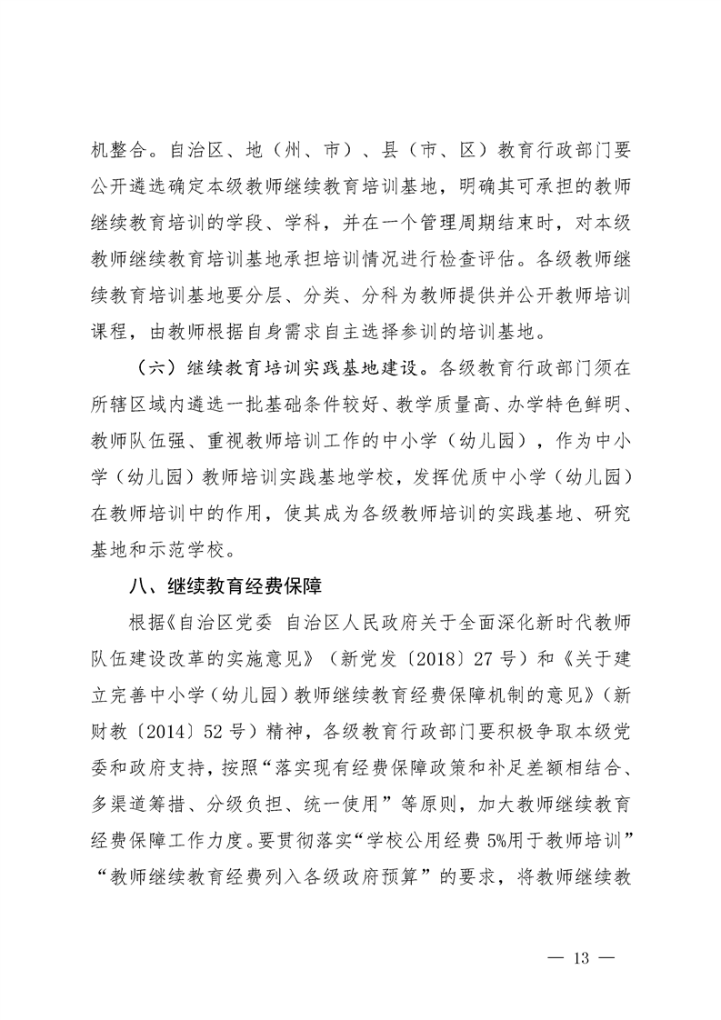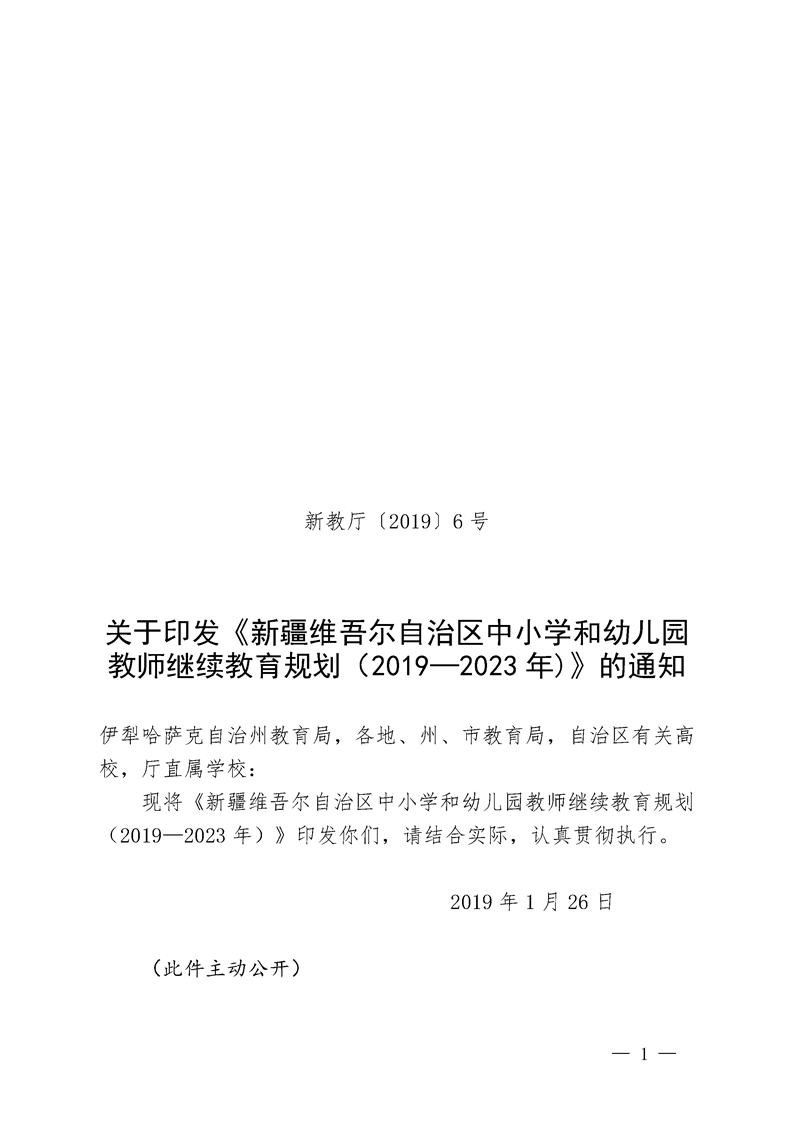 关于印发《新疆维吾尔自治区中小学和幼儿园教师继续教育规划(2019—2023年)》的通知